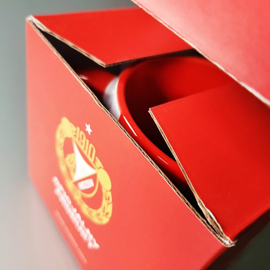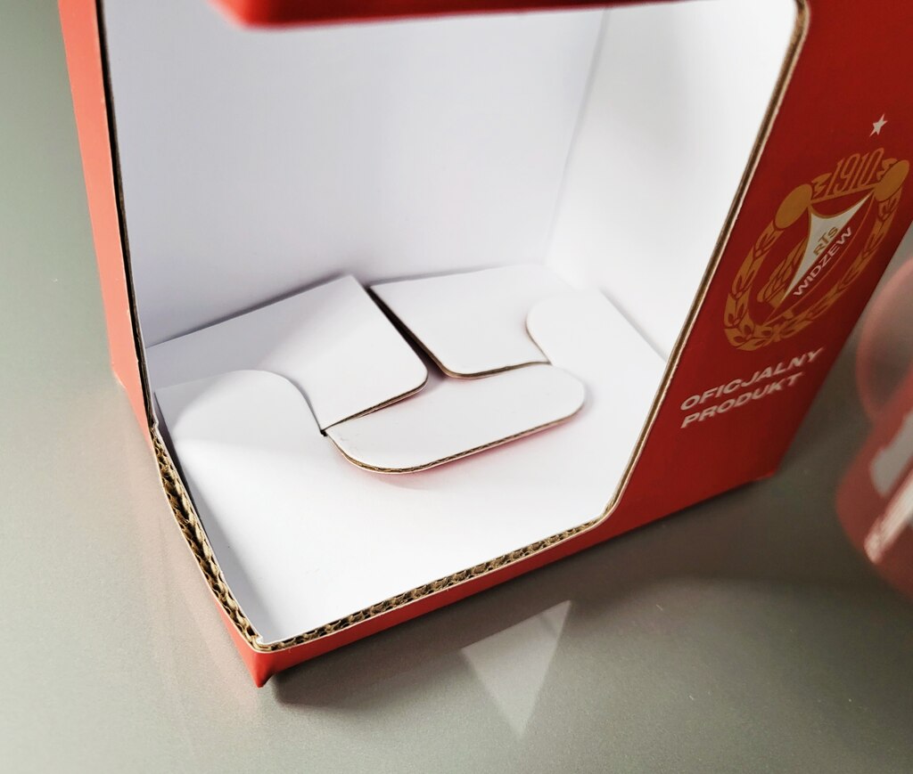 W ramach jednej z ostatnich realizacji przygotowaliśmy opakowanie na kubek dla klubu piłkarskiego Widzew Łódź. Projekt konstrukcji oraz grafiki został dostarczony przez klienta, a naszym zadaniem było wykonanie produkcji opakowania w technologii kaszerowanej tektury falistej.